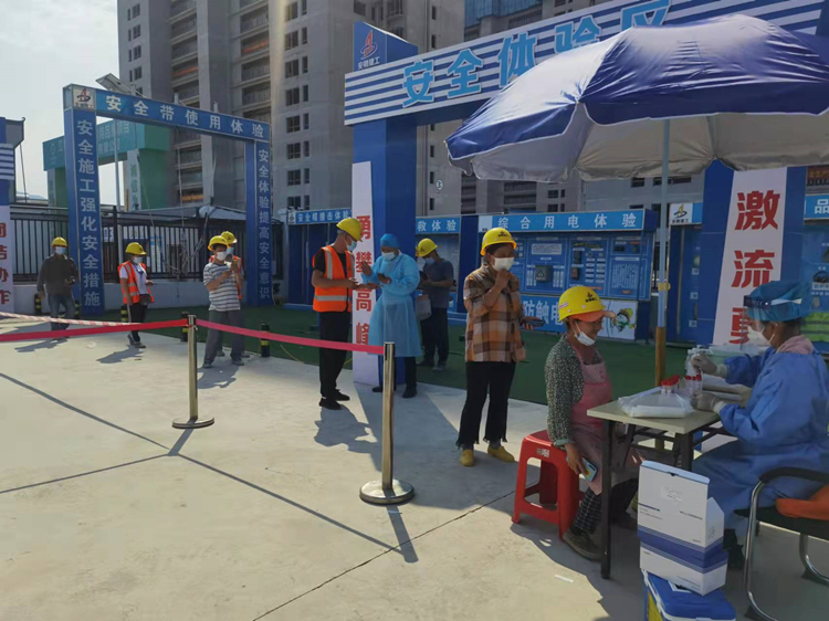 因受蕪湖當(dāng)?shù)匾咔橛绊?,?dāng)?shù)刂鞴懿块T要求安徽省公共衛(wèi)生臨床中心(蕪湖)項(xiàng)目實(shí)行封閉式管理,為保障項(xiàng)目生產(chǎn)施工工作正常運(yùn)行,項(xiàng)目部組織全體人員進(jìn)行為時(shí)七至十四天的每日一次核酸檢測,為保障項(xiàng)目各項(xiàng)工作有序推進(jìn),分公司團(tuán)支部組織號(hào)召該項(xiàng)目青年團(tuán)員志愿者維持現(xiàn)場秩序,協(xié)助進(jìn)行核酸檢測登記、掃碼等工作。