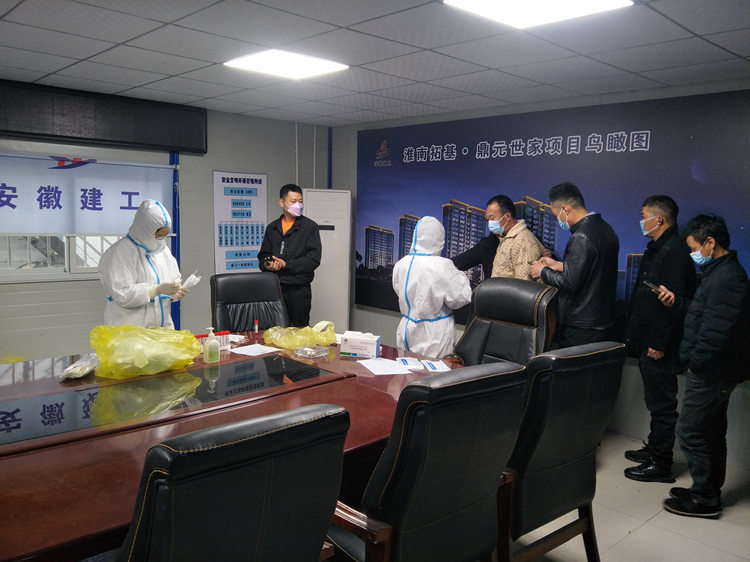 4月18日上午,五公司皖投國濱世家三期項(xiàng)目為落實(shí)公司各項(xiàng)防疫和肥西縣政府疫情防控“一周三檢”的要求,同時(shí)考慮到項(xiàng)目整體施工已經(jīng)到裝飾裝修階段,施工工序交叉較多,現(xiàn)場施工較忙等原因,項(xiàng)目部邀請(qǐng)核酸檢測單位進(jìn)入施工現(xiàn)場,分班組、分人員完成現(xiàn)場400余人的核酸檢測任務(wù),各班組做完核酸檢測立即投入現(xiàn)場安全生產(chǎn),這樣既落實(shí)了項(xiàng)目防疫各項(xiàng)要求,也保證了現(xiàn)場的施工進(jìn)度要求。
