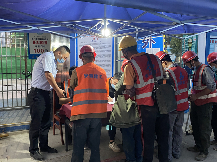 早上六點(diǎn),二公司合肥一中新建藝術(shù)禮堂項(xiàng)目工地入口處已經(jīng)井然有序地排起了長隊(duì)。掃描并出示安康碼、行程碼、三日內(nèi)核酸證明、測量體溫并簽到已經(jīng)成為了現(xiàn)場全體管理及施工人員的自發(fā)性行為。因涉及學(xué)校和建筑工地,該項(xiàng)目成為各級(jí)主管部門關(guān)注的重點(diǎn)。通過下沉管理及項(xiàng)目全體人員的努力,該項(xiàng)目當(dāng)前疫情防控成果受到多方口頭嘉獎(jiǎng)及肯定。項(xiàng)目預(yù)計(jì)8月底交付使用,為確保交出滿意答卷,項(xiàng)目正積極協(xié)調(diào)各方資源,全力保證進(jìn)度節(jié)點(diǎn)。