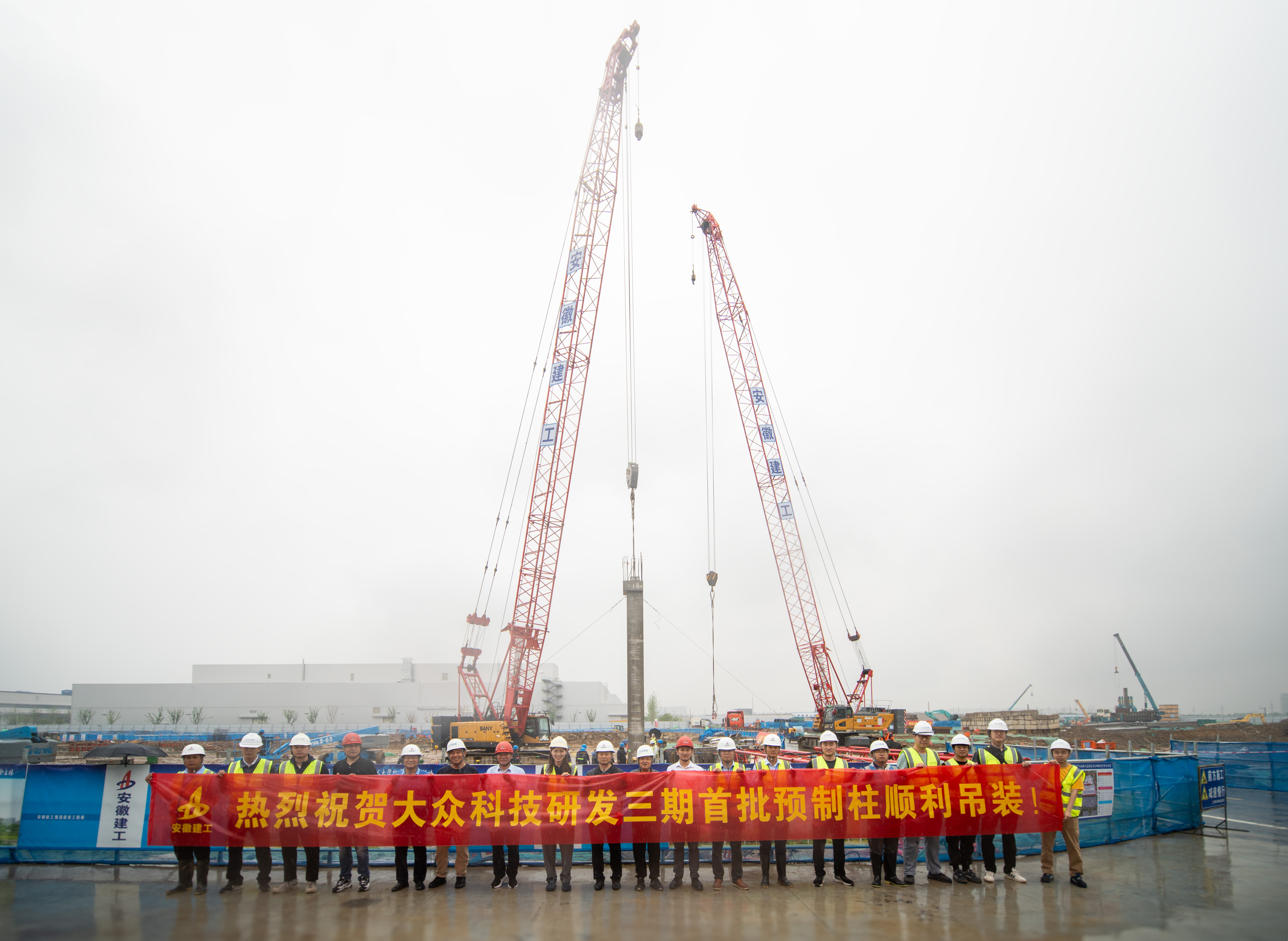 高質(zhì)量 高效率丨大眾科技研發(fā)三期項(xiàng)目首批預(yù)制柱順利吊裝
