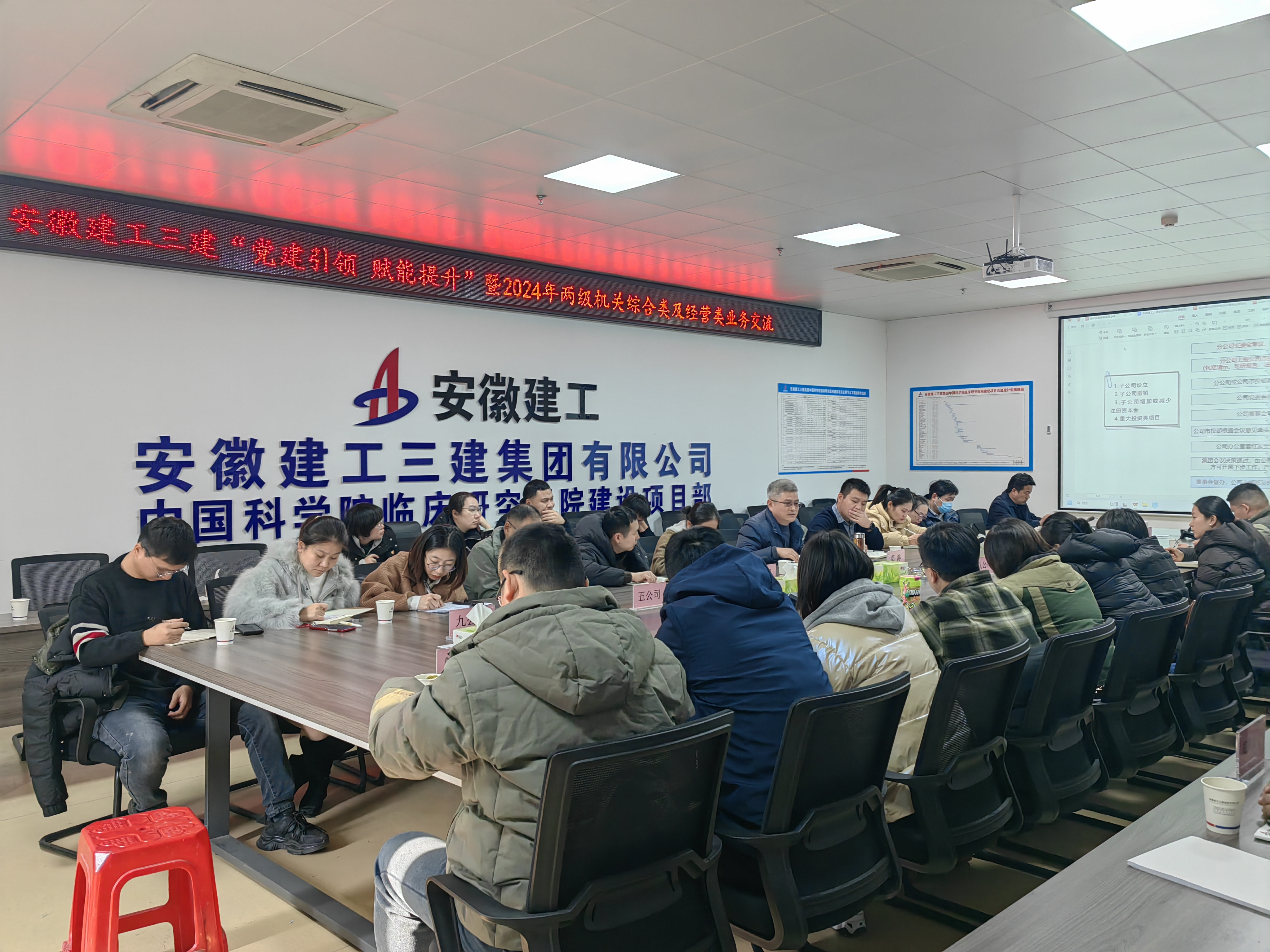 參觀結(jié)束后,一行人前往中國(guó)科學(xué)院臨床研究醫(yī)院項(xiàng)目開(kāi)展了2024年兩級(jí)機(jī)關(guān)綜合類(lèi)及經(jīng)營(yíng)類(lèi)業(yè)務(wù)交流,公司辦公室及市場(chǎng)開(kāi)發(fā)與投資部對(duì)相關(guān)制度進(jìn)行宣貫解讀,部署安排2025年重點(diǎn)工作,與會(huì)人員就管理經(jīng)驗(yàn)及工作困惑進(jìn)行深入交流。會(huì)議強(qiáng)調(diào),二級(jí)單位職能科室作為公司決策部署貫徹落實(shí)的重要責(zé)任主體,科室負(fù)責(zé)人責(zé)任重大,一是要做“真心人”,制度有效執(zhí)行的基礎(chǔ)在學(xué),關(guān)鍵在做,要發(fā)揮帶頭作用,真學(xué)真懂用好制度文件;二是要做“細(xì)心人”,認(rèn)真研判、深入思考工作思路,扎實(shí)開(kāi)展工作,不斷提升自身創(chuàng)新能力,提高科室管理水平;三是要做“有心人”,梳理總結(jié)分析2024年科室各項(xiàng)工作,主動(dòng)思考存在的不足,迎難而上敢作敢為,做到敢管、會(huì)管、善管。