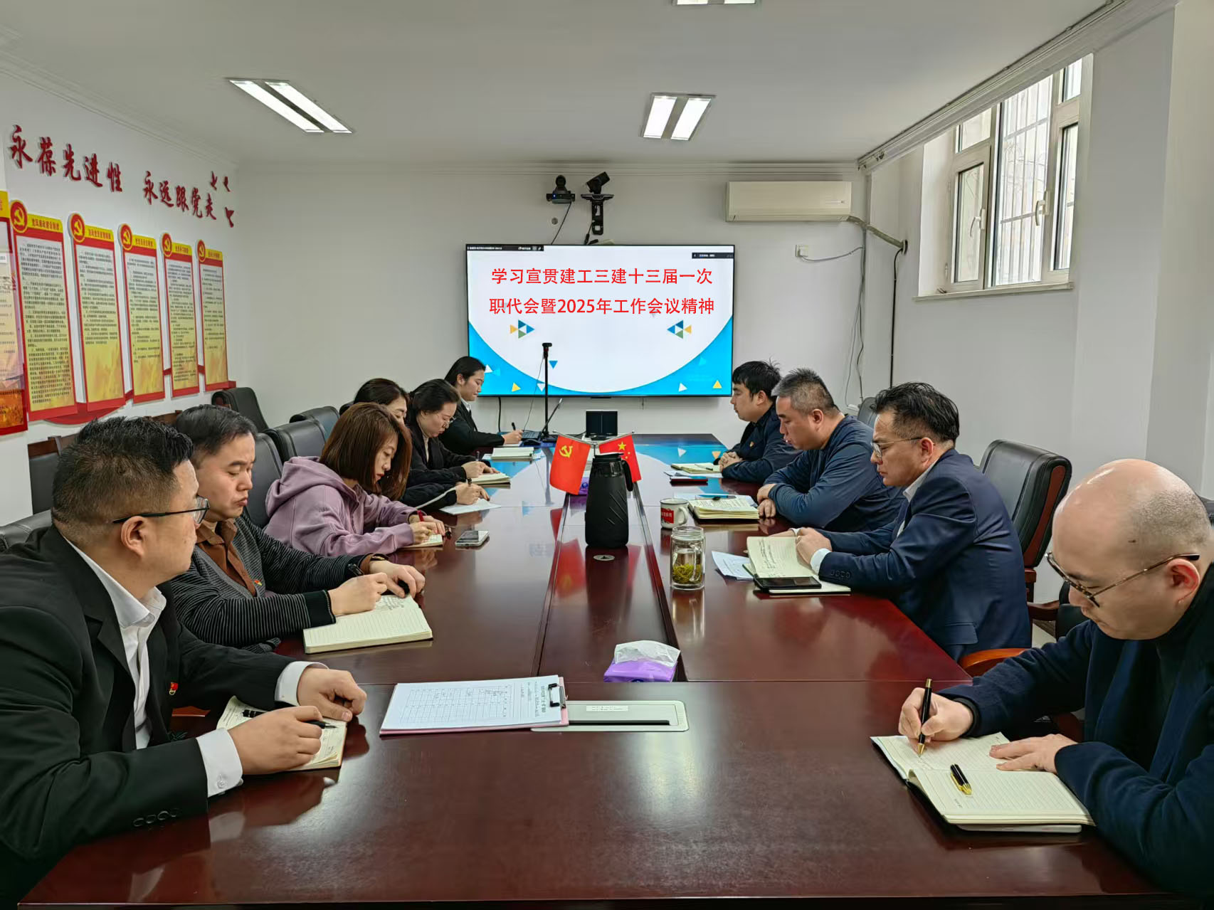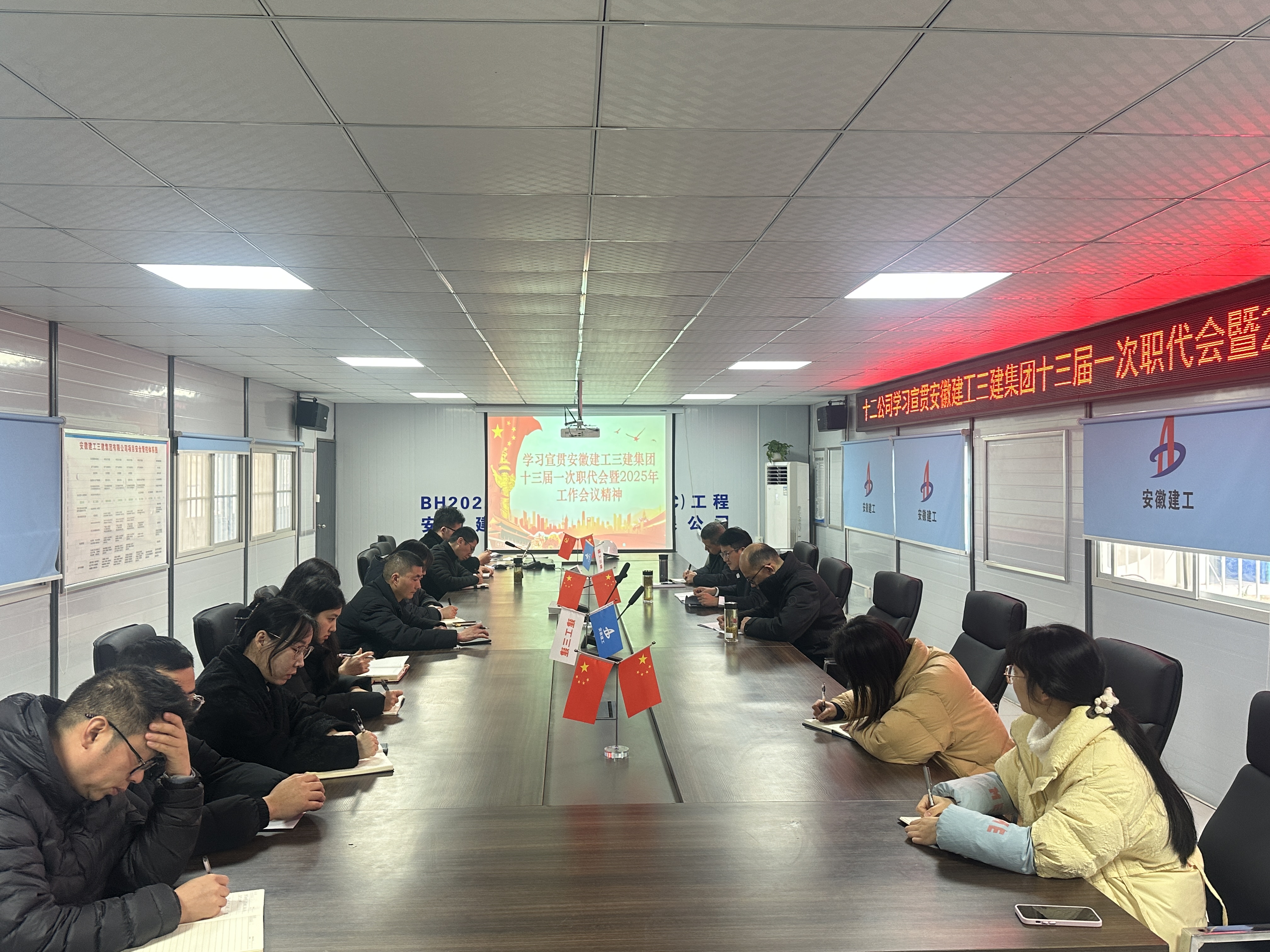 近日,安徽建工集團(tuán)控股有限公司三屆二次職工代表大會(huì)暨2025年工作會(huì)議和安徽建工三建集團(tuán)有限公司十三屆一次職代會(huì)暨2025年工作會(huì)議勝利召開。會(huì)后,建工三建所屬各單位迅速掀起學(xué)習(xí)宣貫熱潮,確保兩級(jí)職代會(huì)精神傳達(dá)到每一位職工,進(jìn)一步統(tǒng)一思想、凝心聚力,推動(dòng)公司高質(zhì)量發(fā)展,為集團(tuán)轉(zhuǎn)型發(fā)展、高質(zhì)量發(fā)展、大發(fā)展貢獻(xiàn)力量。