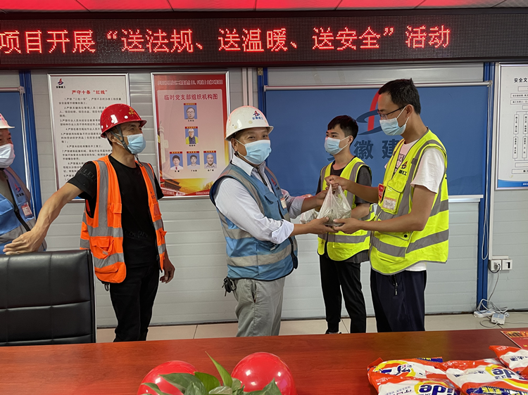 今年6月是第21個全國“安全生產(chǎn)月”,以“遵守安全生產(chǎn)法、當好第一責任人”為主題。按照《廬陽區(qū)重點中心2022年“安全生產(chǎn)月”和“安全生產(chǎn)廬陽行”》活動方案統(tǒng)一部署要求,6月2日下午,正值端午來臨之際,八公司五里片區(qū)項目黨支部組織項目黨員在一線班組職工中開展“送法規(guī)、送溫暖、送安全”活動,項目黨員帶領(lǐng)大家觀看了習近平總書記關(guān)于安全生產(chǎn)重要論述《生命重于泰山》專題紀錄片及近期發(fā)生的安全事故相關(guān)視頻,同時給大家發(fā)放《民法典與生活同行》普法宣傳冊,高溫防曬服、洗衣粉、粽子、咸鴨蛋和節(jié)日祝福。將安全生產(chǎn)與聯(lián)系群眾、服務職工相結(jié)合,極大地提高了廣大一線班組職工的安全意識,在職工中廣受好評。