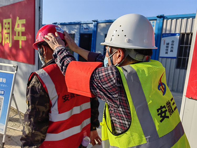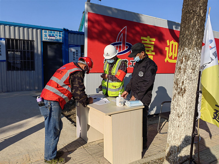 前期圍墻未完全封閉,給防疫帶來(lái)一定的難度,為防止工人未登記入場(chǎng)私自出入,項(xiàng)目經(jīng)理崔沖雙管齊下,帶領(lǐng)項(xiàng)目部制定防疫方案。一是采取項(xiàng)目管理人員現(xiàn)場(chǎng)巡查制度,實(shí)行網(wǎng)格化管理。二是制定安全帽每日進(jìn)場(chǎng)貼牌,對(duì)入口登記過(guò)的工人安全帽上貼上安全牌,便于巡查人員識(shí)別當(dāng)日現(xiàn)場(chǎng)人員是否按要求進(jìn)場(chǎng),此方式得到了業(yè)主和監(jiān)理單位充分認(rèn)可。