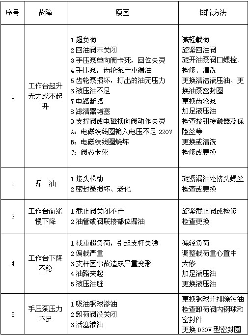 2、 升降操作:分為上下控制升降、手電兩用,按標注符號進行操作,使用前檢察手壓閥是否關閉,當作業(yè)時突然停電,可松開手壓泵閥,升降機此時緩慢下降到最低位置。